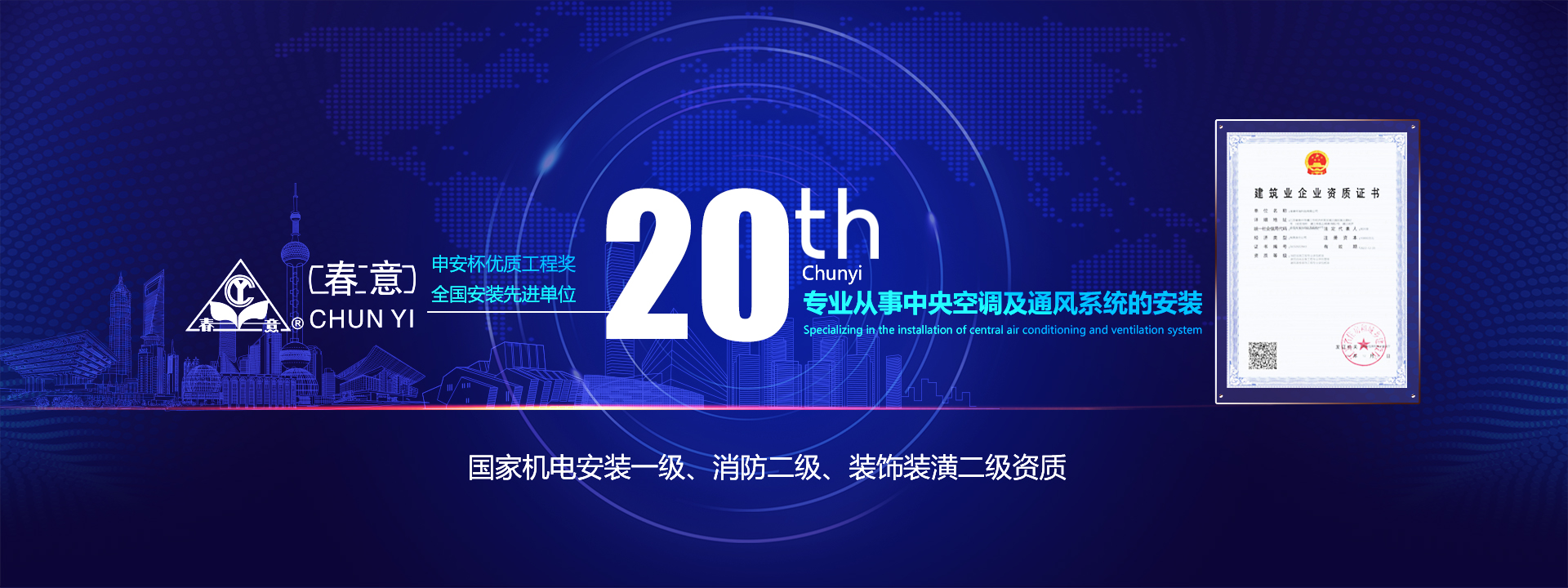 • 國家機電安裝一級、消防二級、裝飾裝潢二級資質